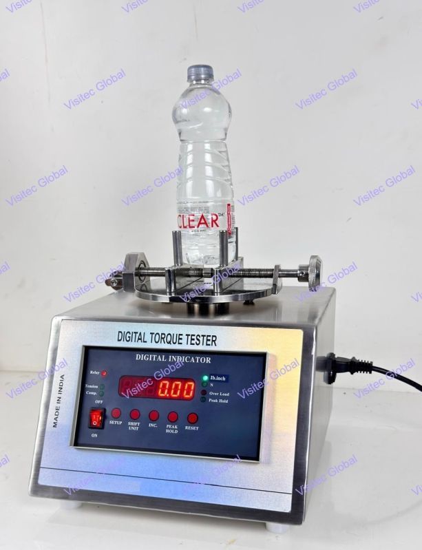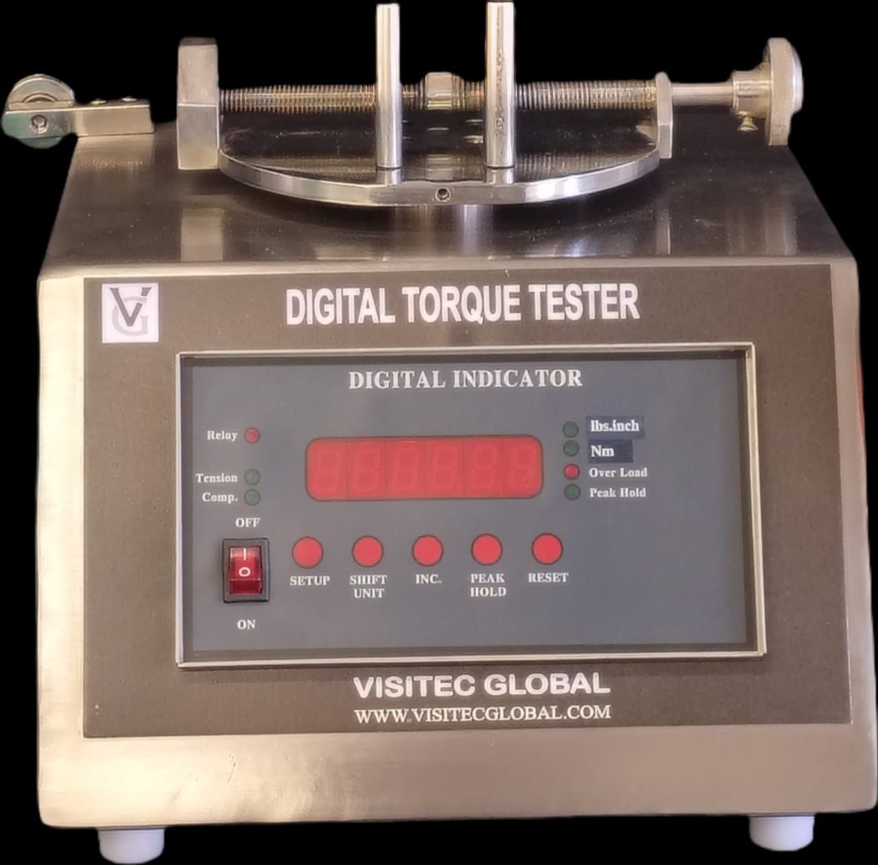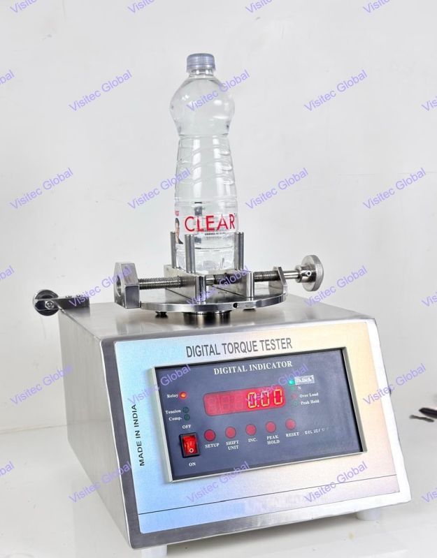 Torque Tester is used for Measuring Incremental / Removal torque of closures. Round / Square/ Rectangular /Oval Bottles / Jars can be held.